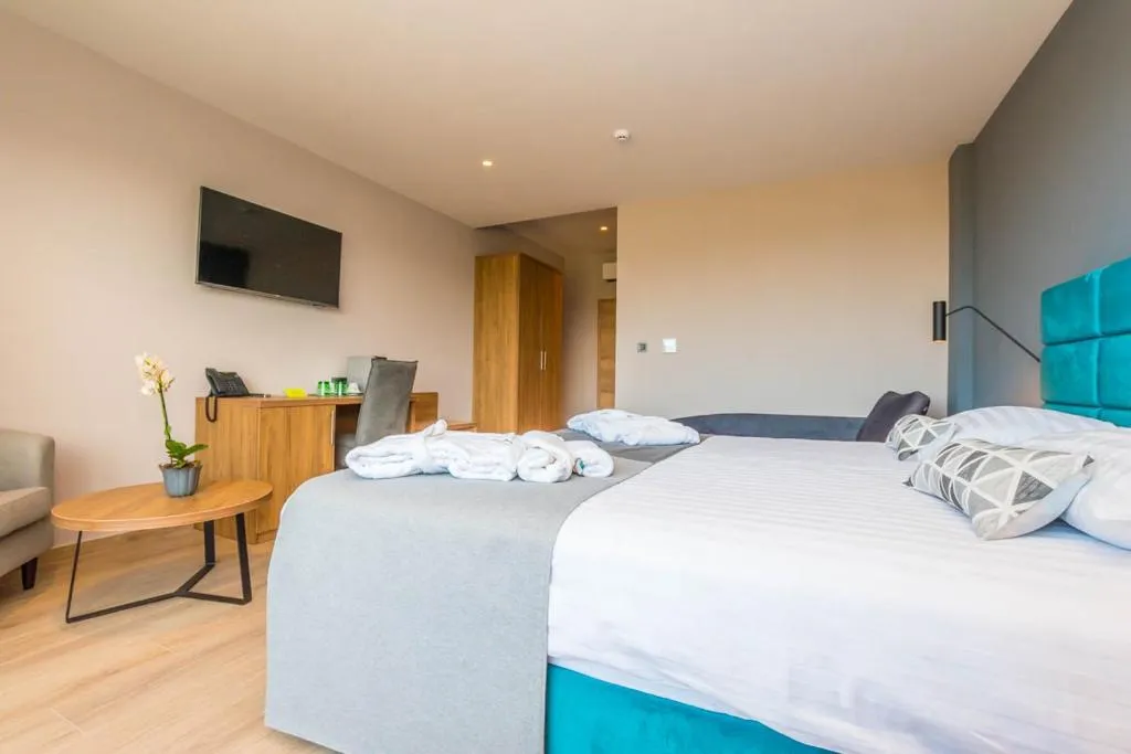 Spacious junior suite with a private balcony, ideal for a comfortable and relaxing stay near the sea.