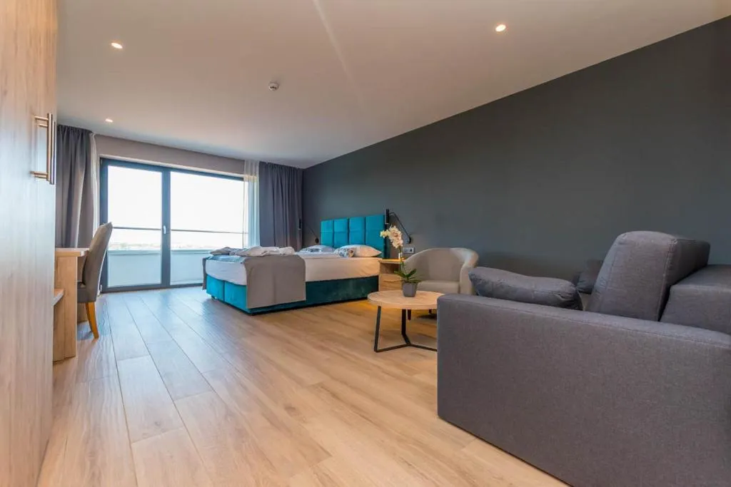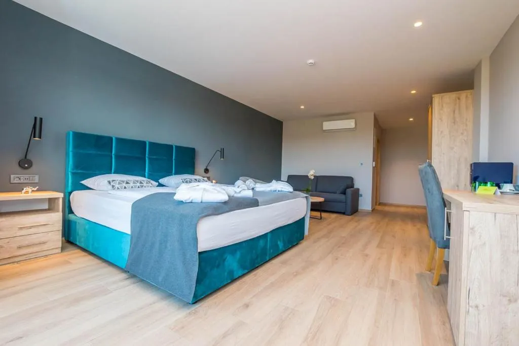 Comfortable double room with a private balcony, perfect for a relaxing stay near the sea.