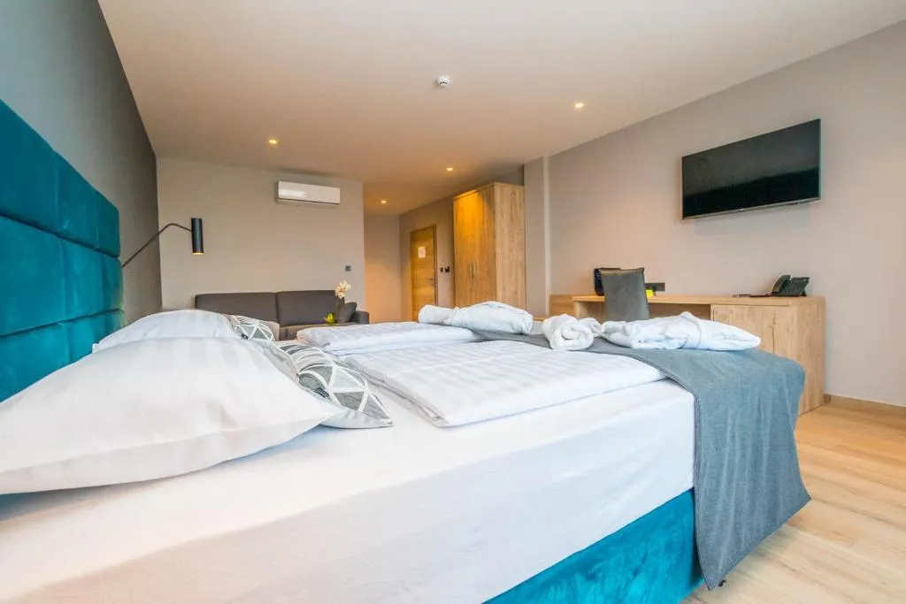Spacious deluxe room with a private balcony, offering a double or twin setup and an additional bed, ideal for couples, friends or families.